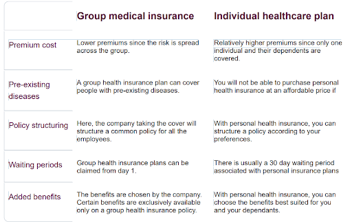 Difference Between group medical insurance & individual health cover?